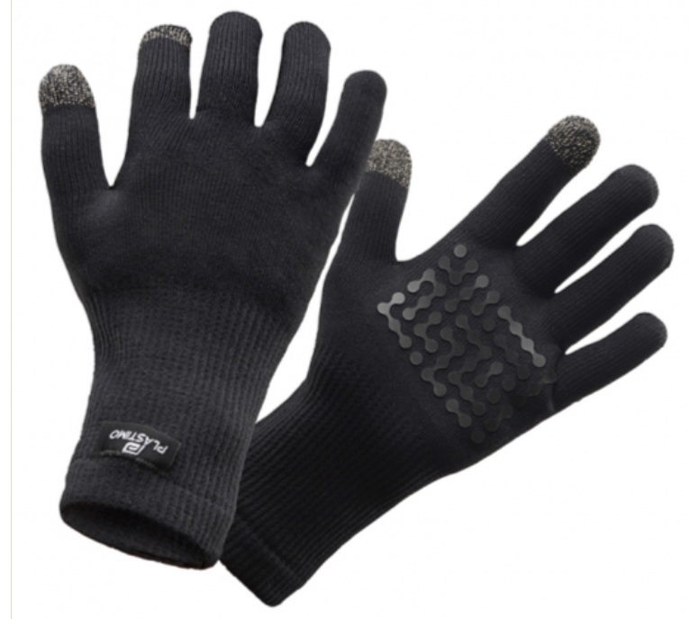 Guantes impermeables con la punta del dedo índice recubierta de goma para poder utilizar cualquier tipo de pantalla táctil, palma de la mano antideslizante, exterior de nylon y elastano e interior cálido de lana merino.